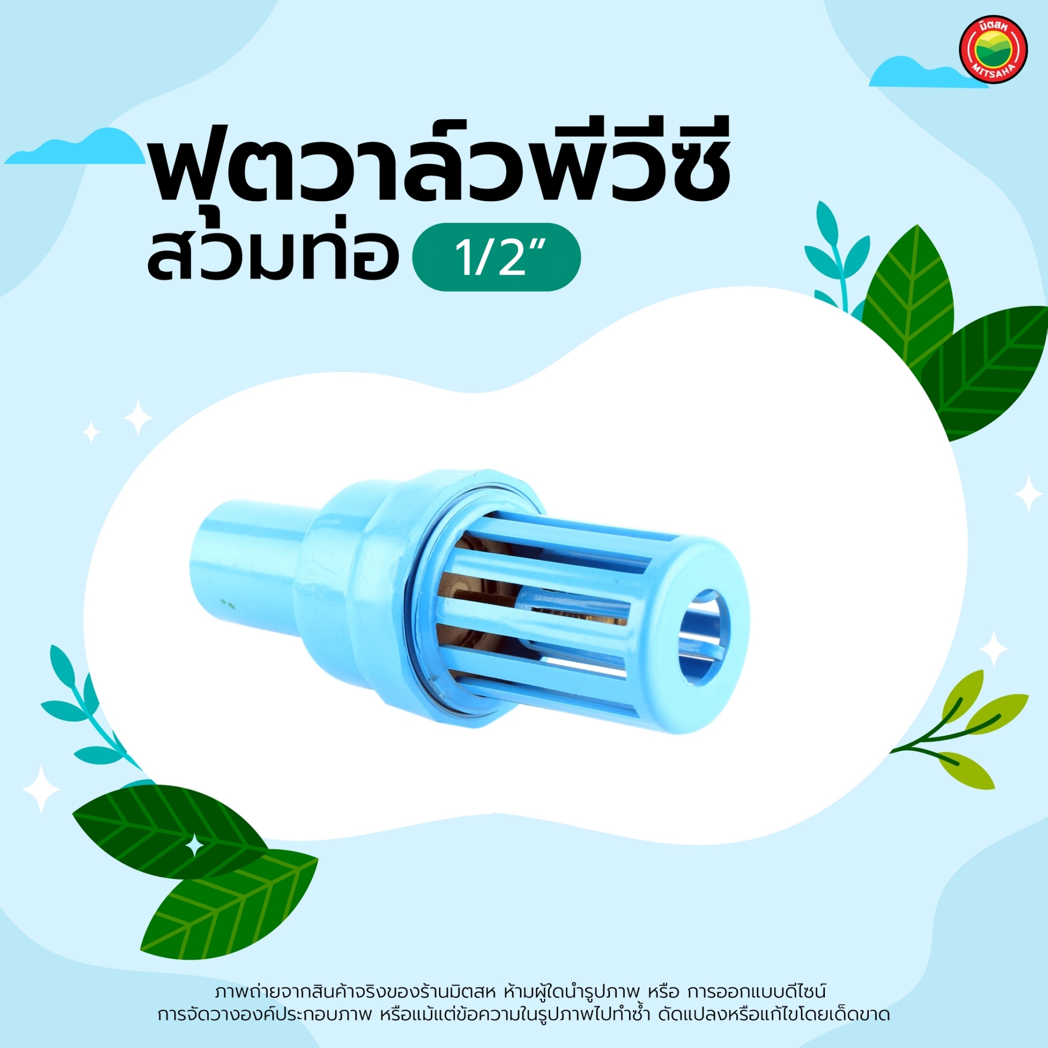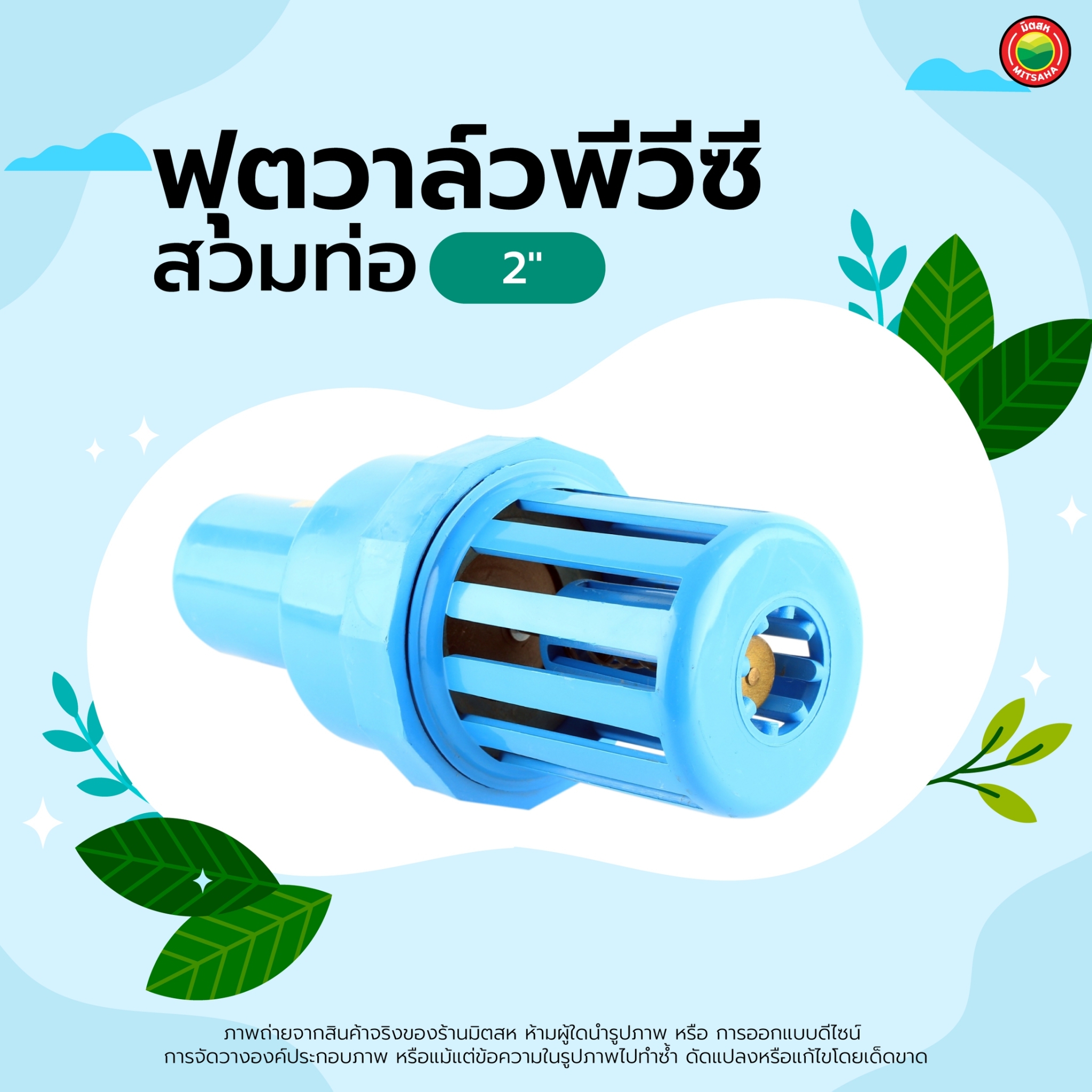 - ฟุตวาล์ว PVCฟ้า ลิ้นสปริง มีหน้าที่เป็นตัวกั้นน้ำให้คงอยู่ในท่อระหว่างปั๊มน้ำ