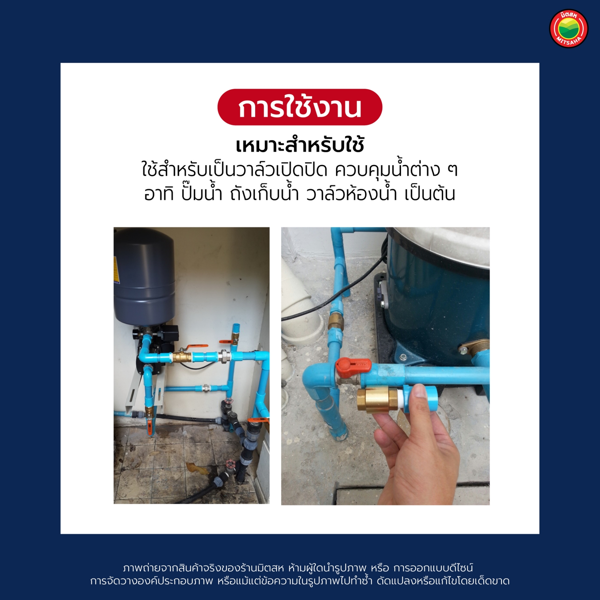 - บอลวาล์วปั๊มลม ใช้งานร่วมกับ เครื่องปั๊มลม สำหรับใช้เปิด-ปิด เครื่องปั๊มลม