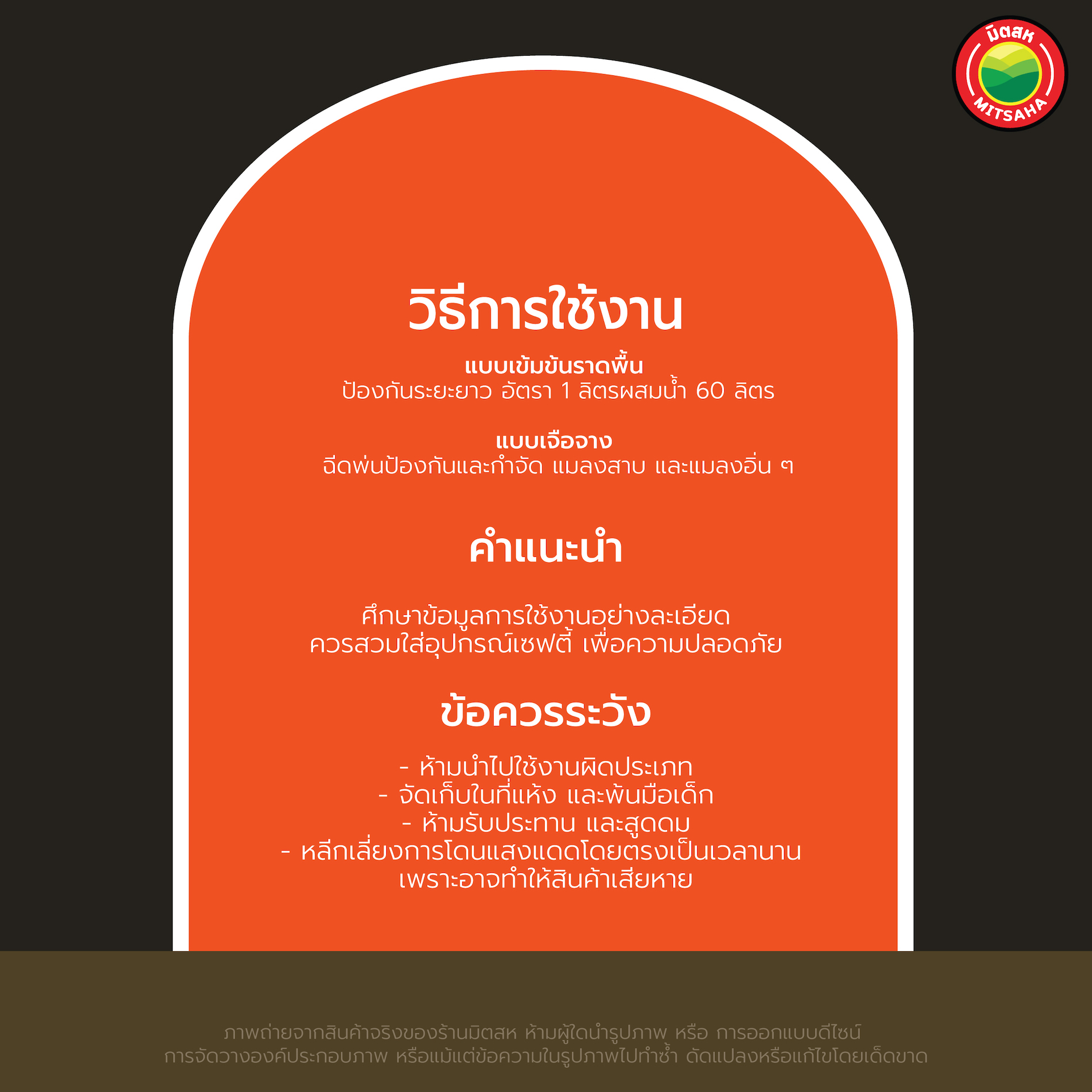 - ผลิตภัณฑ์ป้องกัน และกำจัดปลวก มอด มดและแมลงอื่นๆ สูตรน้ำ ใช้ราดพื้น หรือฉีดพ่น