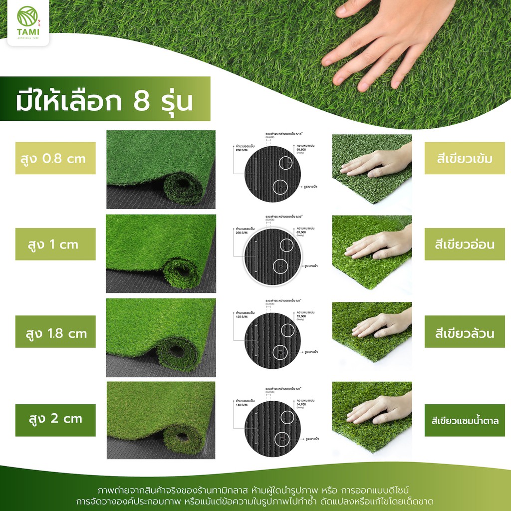 - ทางร้านมีหญ้าเทียมหลายความสูง ให้ลูกค้าเลือกตามการใช้งาน
